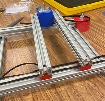 Considerations: The parts we were given comprise 8020 aluminum, stepper motors, pulleys, and belts (idler and timing). The 8020 aluminum is extruded in standard dimensions: 25 mm by 25 mm. The aluminum extrusion will serve as both structural material and linear guide, which minimizes machining operations by doubling functionality. Except for the standard components, we will design all parts for 3D printing or laser cutting. Additionally, standard fasteners such as screws, pins, and others may be used.